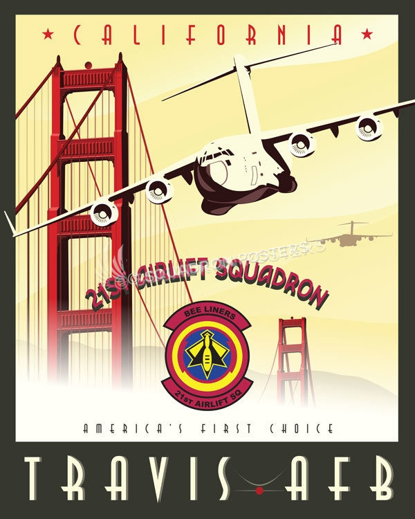 “Travis AFB C-17 21st Airlift Squadron” vintage style art by – Squadron Posters!