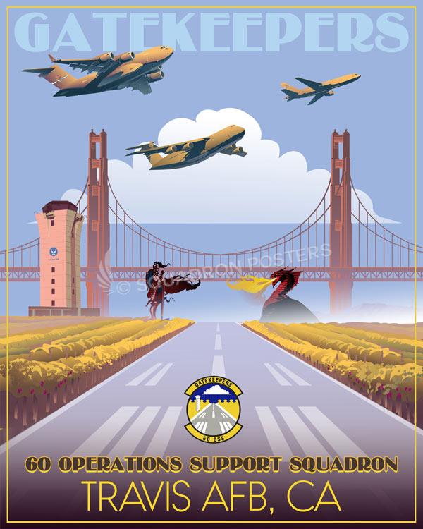Travis AFB 60th OSS vintage style military aviation travel poster art by – Squadron Posters!