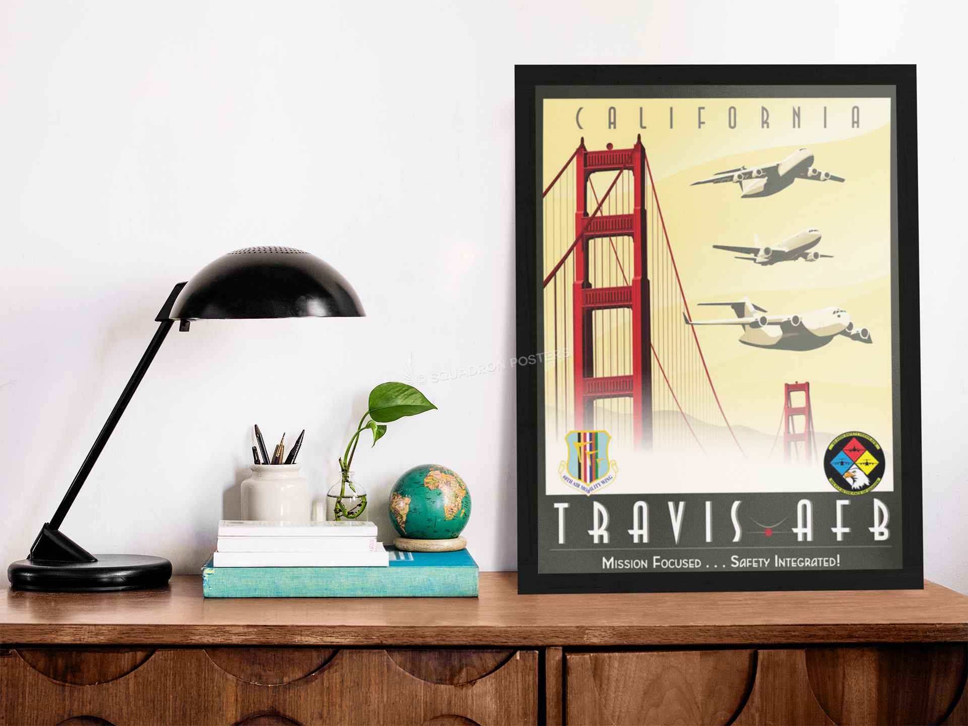 Travis AFB 60th AMW Safety Office vintage style military aviation travel poster art by – Squadron Posters!