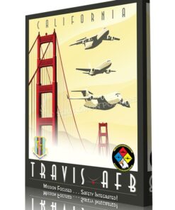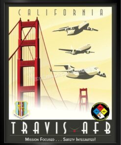 Travis AFB has a major impact on the community as a number of military families and retirees have chosen to make Fairfield their permanent home. It is the largest employer in the city and Solano County as well, and the massive Travis workforce has a local economic impact of more than $1 billion annually. The base also contributes many highly skilled people to the local labor pool. The base’s host unit, the 60th Air Mobility Wing, is the largest wing in the Air Force’s Air Mobility Command, with a versatile fleet of 26 C-5 Galaxies, 24 KC-46 Pegasus, and 13 C-17 Globemaster III aircraft. Check out this stunning Travis AFB 60th AMW Safety Office Art by – Squadron Posters!