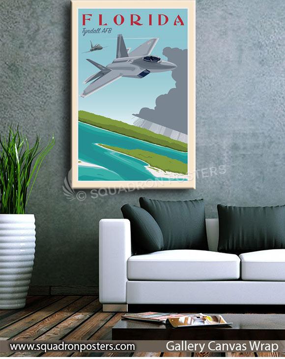 Tyndall AFB F-22 vintage style military aviation travel poster art by – Squadron Posters!