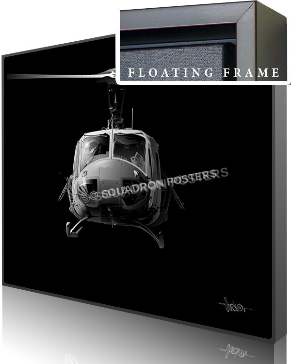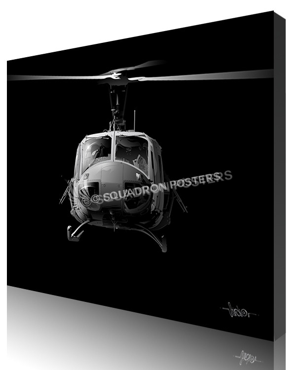 “UH-1 Huey Jet Black Lithograph” vintage style military aviation poster art by – Squadron Posters!