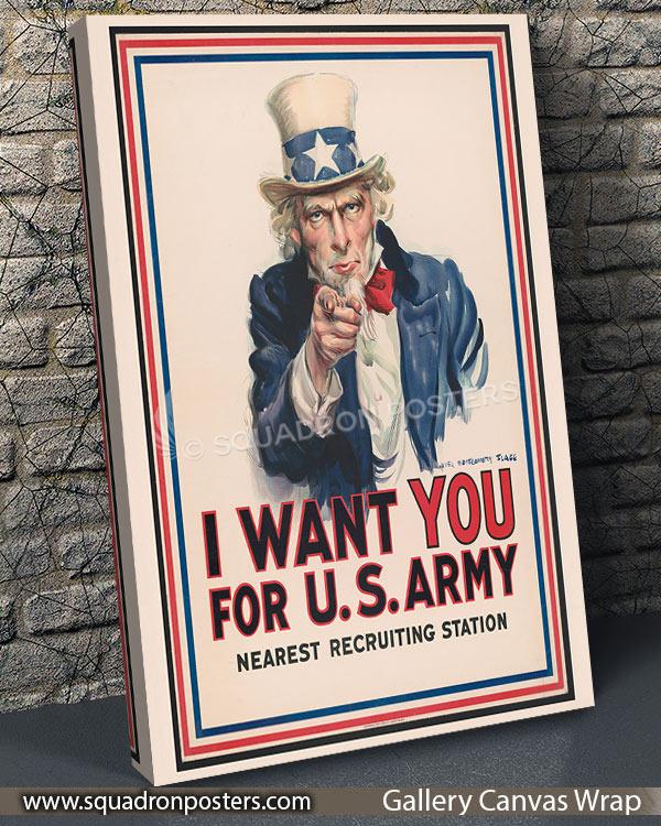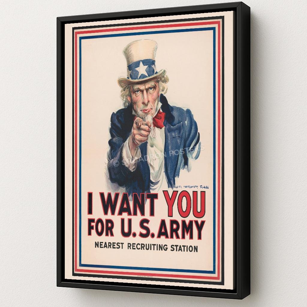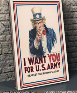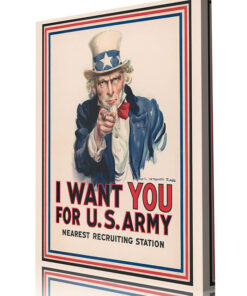 This iconic historic artwork pays tribute to one of the most recognizable recruitment images in American history. Featuring Uncle Sam’s unmistakable call to service, the message “I Want You” became a powerful symbol of national unity and duty during times of war. Rendered in a classic poster style, this piece captures the urgency and resolve that inspired generations to step forward in service of their country. A cornerstone of American military imagery, this artwork remains a lasting emblem of patriotism and civic responsibility.