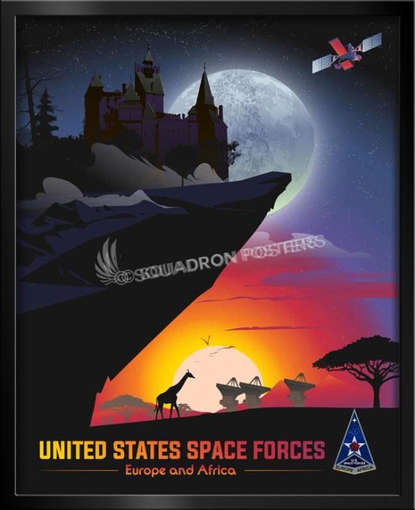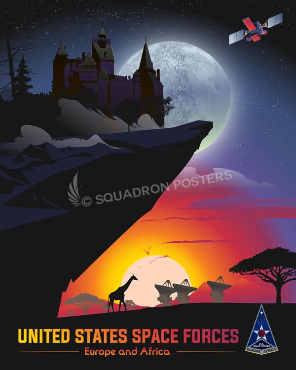 US Space Forces Europe and Africa vintage style military aviation travel poster art by – Squadron Posters!
