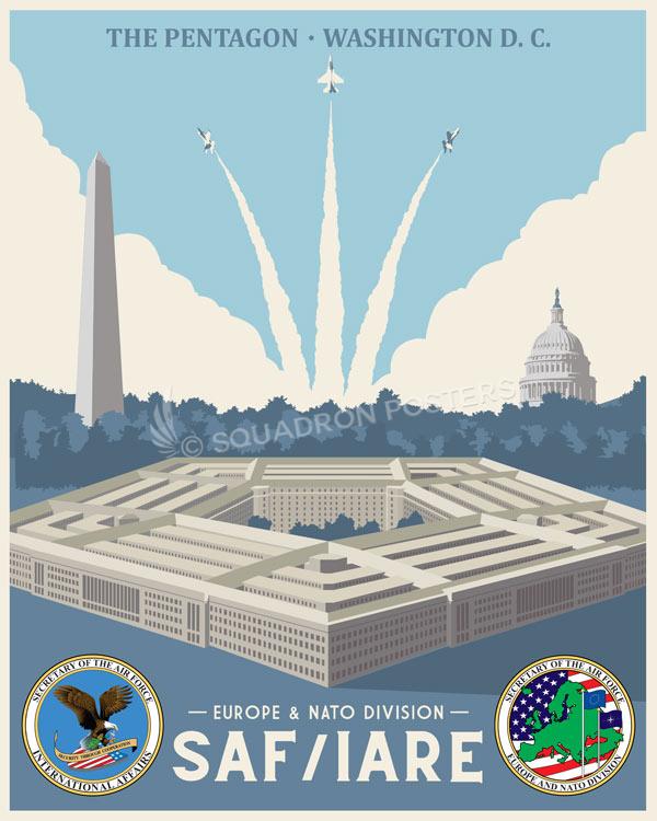 Washington DC Pentagon SAF IARE Europe and NATO Division vintage style military aviation travel poster art by – Squadron Posters!