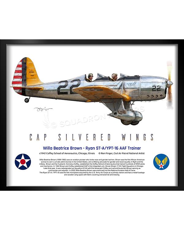 WB Brown Ryan YPT-16 AAF Trainer vintage style military aviation travel poster art by – Squadron Posters!