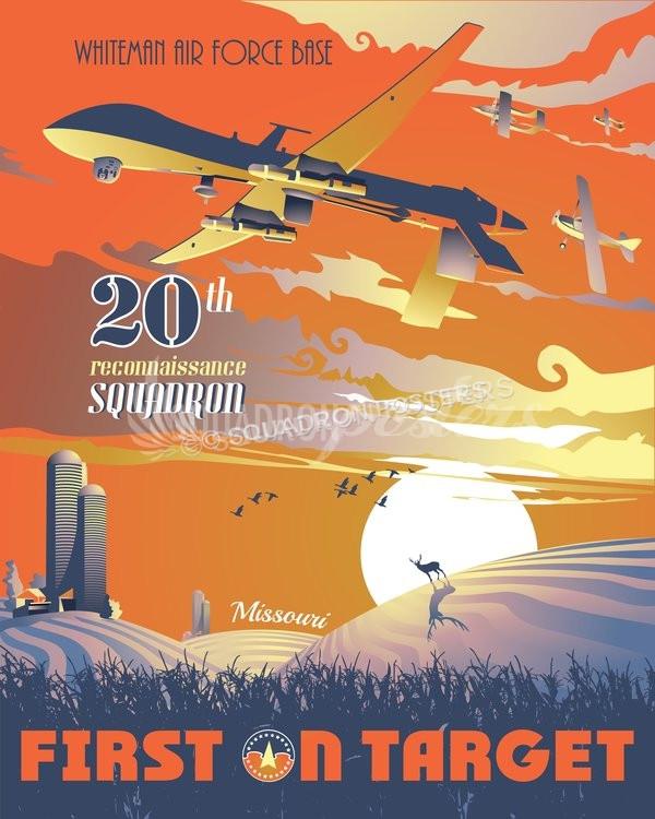 Whiteman AFB 20th RS MQ-1 (Version 2) vintage style military aviation poster art by Squadron Posters