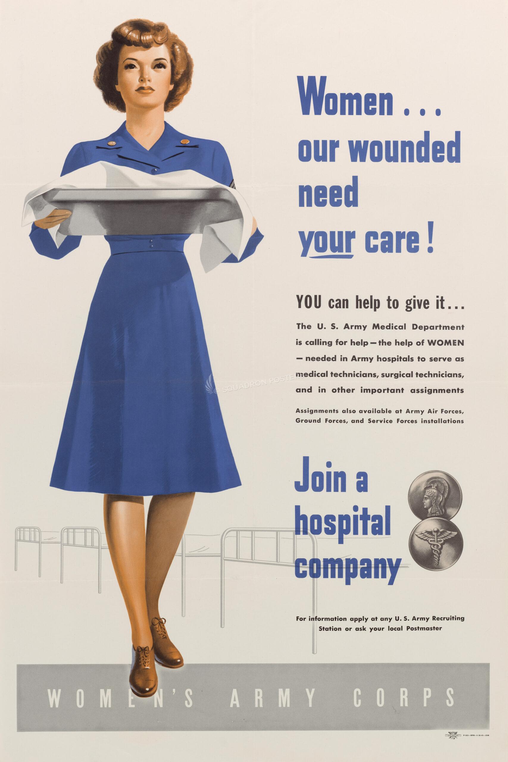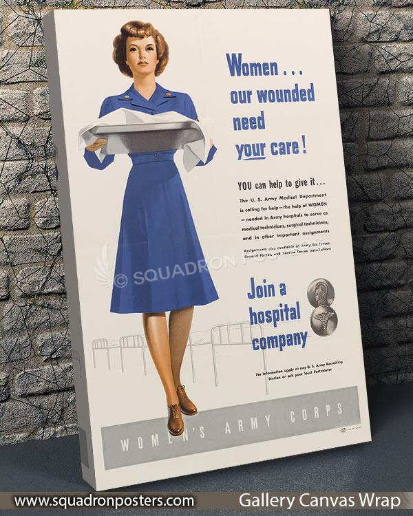 Women Our Wounded Need Your Care Historic vintage style military aviation travel poster art by – Squadron Posters!