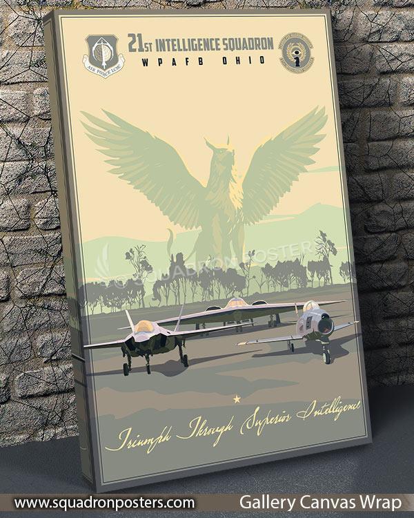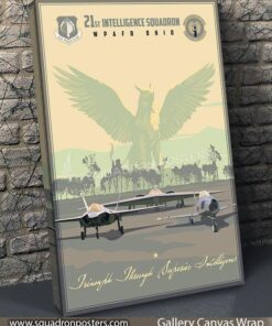 The host unit at Wright-Patterson AFB is the 88th Air Base Wing (88 ABW), assigned to the Air Force Life Cycle Management Center and Air Force Materiel Command. The 88 ABW operates the airfield, maintains all infrastructure and provides security, communications, medical, legal, personnel, contracting, finance, transportation, air traffic control, weather forecasting, public affairs, recreation and chaplain services for more than 60 associate units. The Air Force’s National Air and Space Intelligence Center and the Space Force’s National Space Intelligence Center are also garrisoned there and are the intelligence community’s primary organizations for strategic air and space threat analysis. Check out this stunning Wright Patterson AFB Ohio 21st IS Art by Squadron Posters!Â