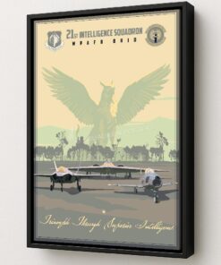 The host unit at Wright-Patterson AFB is the 88th Air Base Wing (88 ABW), assigned to the Air Force Life Cycle Management Center and Air Force Materiel Command. The 88 ABW operates the airfield, maintains all infrastructure and provides security, communications, medical, legal, personnel, contracting, finance, transportation, air traffic control, weather forecasting, public affairs, recreation and chaplain services for more than 60 associate units. The Air Force’s National Air and Space Intelligence Center and the Space Force’s National Space Intelligence Center are also garrisoned there and are the intelligence community’s primary organizations for strategic air and space threat analysis. Check out this stunning Wright Patterson AFB Ohio 21st IS Art by Squadron Posters!Â