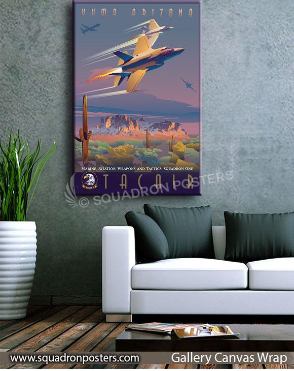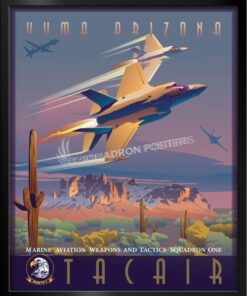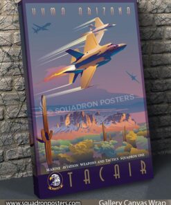 Step into the world of tactical aviation excellence with the Yuma, Arizona MAWTS-1 TACAIR Division canvas art featuring the F-35C, F-35B, F-18, and MQ-9 aircraft. This striking artwork celebrates the Marine Aviation Weapons and Tactics Squadron One’s (MAWTS-1) TACAIR Division in Yuma, Arizona, showcasing a dynamic array of cutting-edge aircraft used in modern aerial warfare. Printed on high-quality canvas, the vivid depiction of these aircraft captures the prowess and versatility of the TACAIR Division, making it an impressive addition to military installations, offices, or spaces dedicated to honoring tactical aviation training and innovation. Whether displayed by military personnel, veterans, or aviation enthusiasts, this canvas art embodies the spirit of advanced air combat training, emphasizing the pivotal role played by MAWTS-1 in shaping the future of aerial warfare.